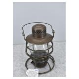 Lot: 453 - New York Central – Dietz Vesta Lantern – Both Frame and Clear Glass Shade are Marked New York Central