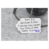 B&O R.R. – Baltimore and Ohio Armspear Kerosine Weighted Lantern w/Ruby Glass Shade – Frame Stamped B&O – Dated 1925