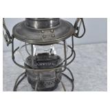 P.R.R. – Pennsylvania Railroad The Keystone Lantern Co. Kerosine Lantern w/U.S.A. Clear Glass Shade – Frame Stamped P.R.R.