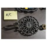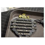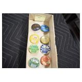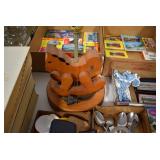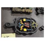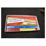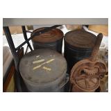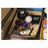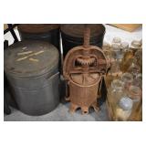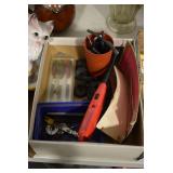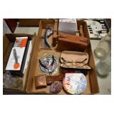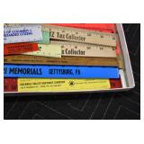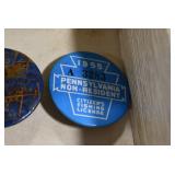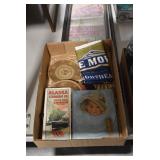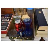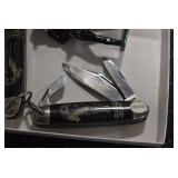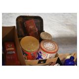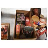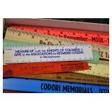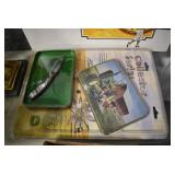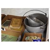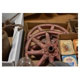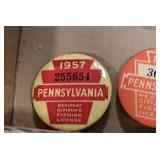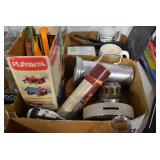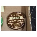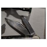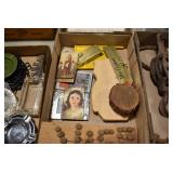 Antiques and Collectibles: Griswold Cast Fry Pans, Longaberger Baskets and Pottery, Woodware, 25+ Lots of Vintage Postcards, Large Amount of Straight Razors, Folding, Pen, and Sheath Knives, Mason Dixon Knife Club Plaques, Butcher Knives, Vintage Scales, Miniature Cast Cannons, Vintage Microscopes, Vintage License Plates and Signs, Victor “His Master’s Voice” Advertising Tin, Vintage NAPA Advertising Signs, NAPA Advertising Tin, Erector Sets, Little Big Books, Costume Jewelry, Old Books, Carved Wooden Figures, Egg Shaped Trinket Boxes, Bear Trap Salesman Sample, Military Figures, Old Military Photographs, Advertising Buttons, Vintage Fishing Licenses, Match Case Holders, Vintage Stamps, Vintage Holiday Cards, Advertising Rulers, Marbles, Draper’s Self Recording Hygrometer, Vintage Telescope, Copper Bucket, Cast Trinkets, Cats Meow Village Wooden Houses, Ball Jars, Yankee Candles, Framed Prints and Pictures, 46 Star Flag, Winter Belle Train Set, Slaw Cutter, and Other