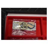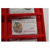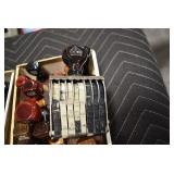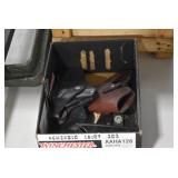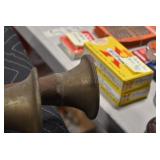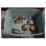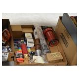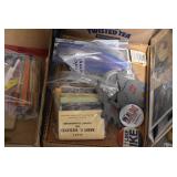 Sporting Related: Primer Shipping Box, Italian Single Cavity Bullet Mold, Daisy BB’s, Powder, 44 Special Brass, 38 Special Brass, 30 Caliber U.S. Army Ammunition, Bullets, 9mm Luger Ammunition, 45 Auto Ammunition, 45-70 Caliber Ammunition, 223 Ammunition, 6.5 Jap Ammunition, 7.7 Jap Ammunition, 445 Gates New Unprimed Brass, Gun Parts, Military Belts, Scopes, Holsters, Primers, Powder Flasks, Super Bang Caps for Toys, Various Bullet Molds, Stocks, Grips, Lee Loader, Gun Case, British Military Model L12A1 7x42 Binoculars, Winchester Flashlight, Wooden Game Calls, and Other