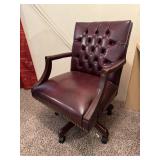 Lot #28 - Burgundy Leather Office Chair with Tufted Design