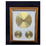 Lot #48 - Beautiful Vintage "Airguide" Barometer Featuring a Brass Face and Three Dials, Housed in a Wooden Frame