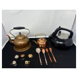 Lot #66 - Vintage Kettle and Spoon Lot - Copper and Black Teapots.
