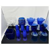 Lot #92 - Assorted Blue Glassware Lot - Vases, Goblets, and Chalices.
