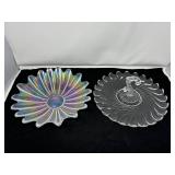 Lot #86 - Two Vintage Glass Serving Dishes - Iridescent and Clear Swirl Design.