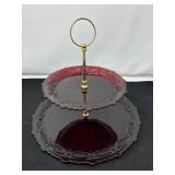 Lot #87 - Vintage Two-Tiered Cake Stand - Red Glass.