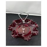 Lot #88 - Vintage Red Hobnail Glass Serving Dish with Handle.