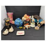 Lot #304 - Decorative Collectibles Lot - Figurines, Baskets, and More.