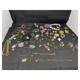 Lot #254 - Vintage Jewelry Lot - Necklaces, Bracelets & Earrings. (Two 14k Gold Earring Backs & Sterling Earrings & Necklace)
