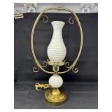 Lot #260 - Unique Vintage Milk Glass Hobnail Hurricane Style Table Lamp - (Works)