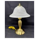 Lot #261 - Vintage Brass Touch Lamp w/ Glass Shade - (Works)