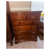 Lot #292 - Vintage "Bassett" Cherrywood 5 Drawer Dresser with Brass Handles