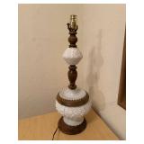 Lot #306 - Vintage Mid-Century Milk Glass & Wood Table Lamp - (Works)