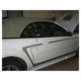 2001 Ford Mustang Convertible 65k miles; gas Club Golf Cart; Sleeper couch with matching love seat, dining room table with six chairs; king and queen mattress sets; bedroom furniture; ladies bike; air compressor; patio furniture; BBQ; Tiffany-like lamp; play pen, bouncer, car seat; golf clubs; freezer chest; mini refrigerator; beautiful Talavera pieces; much HH (household) items. |