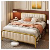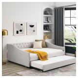 *INCOMPLETE* Full Size Daybed with Twin Trundle, Upholstered Tufted Sofa Bed with Button Tufted and Nailtrim on Arms, Day Bed Frame with Wood Slat Support, No Box Spring Needed (Beige, Full)