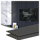 Wood Panels for Wall and Ceiling, 94.5"×11" Wall Panels for Interior Wall Decor, 3D Wood Slat Wall Panel/Fluted Sound Absorbing Panel - Matte Black Oak 2 Pack