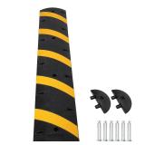 Speed Bump,84" Rubber Speed Bumps, 2 Channel Modular Speed Hump 25000LBS Capacity, Cable Ramps Hose Protector Ramps for Asphalt Concrete Gravel Driveway with 2 End Caps and 6 Bolt Spikes