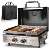 Hisencn Portable Flat Top Grill Propane Gas Grill for Outdoor, Camping, Tabletop, Kitchen, Tailgating, RV - 348 sq. in. Heavy Duty & 24000 BTUs Griddle for BBQ Grill, 22 Inch with Hood, with Carry Bag