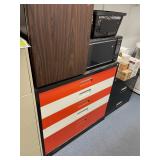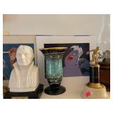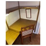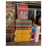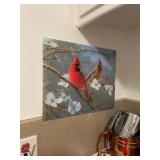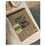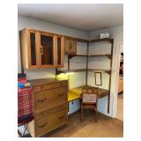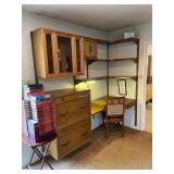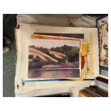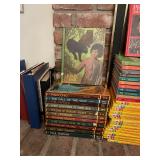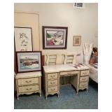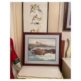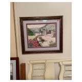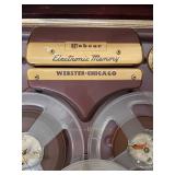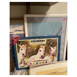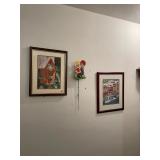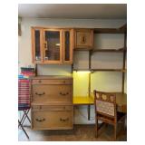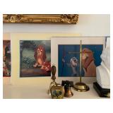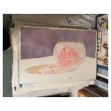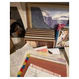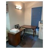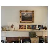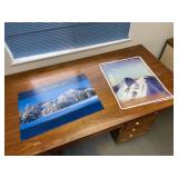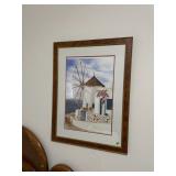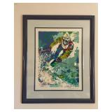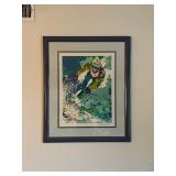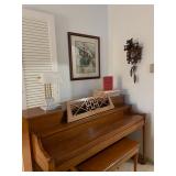 Vintage Kimball wall piano, vintage sheet music, small assorted wall pictures in fancy frames, oil paintings, Leroy Neiman 1984 “Skier” serigraph with certificate, Disney art, Cuckoo clocks, vintage wall cabinet consoles system, filing cabinets, bronze bull bookends, beer steins, collectible spoons, antique secretary desk with window cabinet and drawers, decorative vases, 3 seat tan microfiber couch, nesting tables, small collectible figurines, glass curio cabinet with 4 glass shelves and rounded sides, carved wood animal figurines, original watercolor by Cecile Ryden Johnson #21 “The Big Burn at Snowmass”, and more!