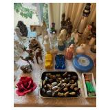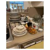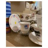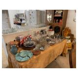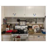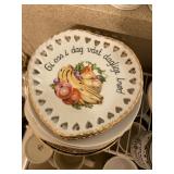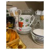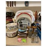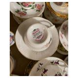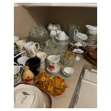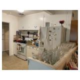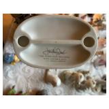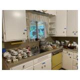 Decorative porcelain plates, 1985 Royal Doulton “Isadora” figurine #HN 2938 and “Melissa” HN 2467, vintage 1985 Precious Moments “I believe in the old rugged cross” figurine, Queen Elizabeth and Prince George figurine, silver plated serving ware, crystal serving ware, large China tea-cup collection some by Royal Sutherland, Crown Prince, Elizabethan. Pyrex, pastel yellow Kitchen Aid mixer, vintage Krups Universal Super Slicer, and so many other kitchen items we can’t mention!