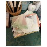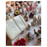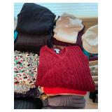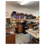 Perfume bottle collection, sewing supplies, vintage sewing machines, linens, blankets, women’s accessories, vintage men’s hats, frosted glass vanity lamps, scarves, vintage handbags, vintage t-shirts, large variety of men’s and women’s vintage clothing, women’s and men’s shoes, Jones New York, London Fog, Pendleton, Anne Klein II, Calvin Klein, Evan-Picone, and lastly, Ralph Lauren.