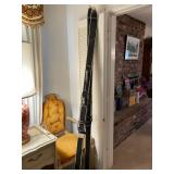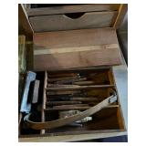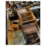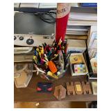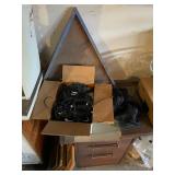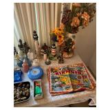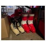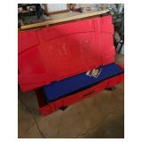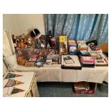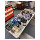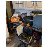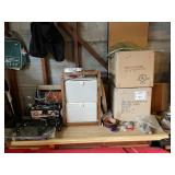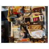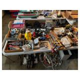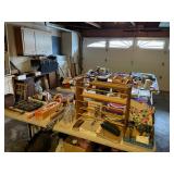 Large wood floor easel, vintage children’s toys, vintage costume and masks, large variety of art supplies and painting mediums, vintage Christmas décor, lights, figurines, a light up snow village, knick-knacks, and ornaments. Garden pots, flowers, succulents, 4 chair patio tile-top table and chairs, a bird bath, cement garden décor, sporting equipment including several children skies and poles from Atomic, Husler, Hart, Kneissl, wood working tools, hand tools, small equipment, Black & Decker Circular 7 ¼ saw, fishing supplies and hooks, Craftsman tool chest, and so much more!