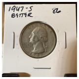 1946-S WASHINGTON SILVER QUARTER BETTER DATE |