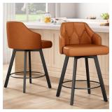- Upholstered with a durable Distressed Saddle Brown Vegan Faux Leather