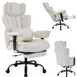 Big and Tall Office Chair 400lbs,Leather High Back Gaming Chair with Foot Rest, Reclining Chair Executive Ergonomic Office Chair Lumbar Support Computer Chair Adjustable Armrests(White)