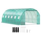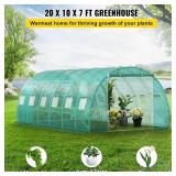 VEVOR Walk-in Tunnel Greenhouse, 20 x 10 x 7 ft Portable Plant Hot House w/Zippered Door, 12 Roll-up Windows, Galvanized Steel Hoops, 3 Top Beam, and 4 Diagonal Poles, Green