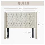 Madison Park Amelia Upholstered Headboard | Nail Head Trim Wingback Button Tufted | Queen, Cream