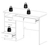 - The large drawer that sits directly under the desktop is lockable and provides storage for your keyboard, office supplies or important documents you want to keep locked up but within grasp. The drawers are backed with metal glides complemented with curved handles and the desk has a foil finish that provides durability and protects against stains, smears, and fading.