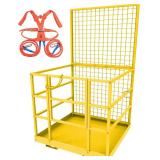 YITAMOTOR 43"x45" Forklift Safety Cage, 1400 LBS Yellow Capacity Forklift Work Platform with Safety Harness, Collapsible Lift Basket Aerial Platform for Lifting Loader