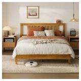 Transform your bedroom with our premium solid wood platform bed frame, meticulously crafted for lasting durability and timeless style. Made from natural, non-toxic materials, this eco-friendly bed frame is an ideal choice for health-conscious families, especially those with children. The platform bed frame boasts a distinctive slatted wood headboard, blending visual appeal with the organic beauty of natural wood, creating a cozy and inviting atmosphere in any bedroom.Resting on solid wood legs, the queen size bed frame provides a strong and stable foundation, supporting up to 1500lbs for a secure and comfortable night's sleep. The rich wood grain enhances the aesthetic of your space, offering a sophisticated, nature-inspired design that effortlessly complements any décor.Choose sustainability and elegance with this wooden bed frame with headboard– a perfect blend of function, comfort, and natural charm. Bring home a piece of nature and elevate your bedroom today!