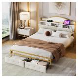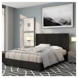 - EXQUISITE DESIGN: Tall polyester upholstered button tufted headboard with gold nailhead trim
