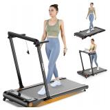 - 2 in 1 Treadmill: You can set it up with arm bars like a conventional treadmill, or simply slide it under your desk like a walking pad, which can stay active while you work