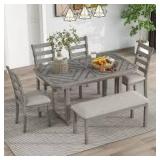 ****DINING CHAIRS ONLY****6Pc Rubber Wood Dining Table Set (Gray)