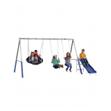 Includes 2 SuperDisc swings with padded frame and water wave slide with safe landing zone