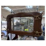 VINTAGE OAK WALL MIRROR W HOOKS |