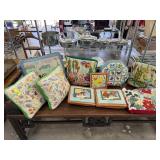 LARGE LOT OF VINTAGE EMBROIDERED PILLOWS |