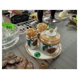 TOLE METAL UMBRELLA STAND & NEIMANS UMBRELLAS |