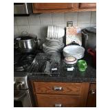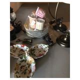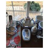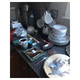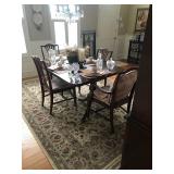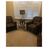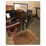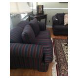 This lovely home is loaded with lots of decorative items for your home, apartment or dorm! Including mahogany demi lune, mahogany china table and chairs. Accent coffee and side tables, a striped sofa and love seat. Plaid accent side chairs with ottoman, walnut sofa table. A beautiful country dinette table with 2 boards, 4 side chairs and a bench. Country pine and iron coffee table. A walnut cabinet, a chin sofa and love seat with accent chair and ottoman. Many quality floor and table lamps, sets of china plus blue and white accent mid-century office desk plus supplies. Cameras, a pair of twin beds and linens. Many Queen size bed linens, paintings with listed artists, and prints. Silver plate and stainless flatware. Costume jewelry, and watches by Lorus. A pearl drum set, a Yamaha saxophone, and Femnder amplifier. Plus so much more, this is not a sale you will want to miss.