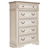(65) Signature Design by Ashley Realyn French Country Two Tone 5 Drawer Chest of Drawers, Chipped White