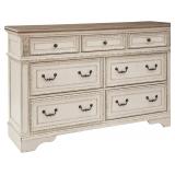 (66) Signature Design by Ashley Realyn French Country 7 Drawer Two Tone Dresser, Chipped White