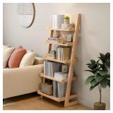 Wooden Ladder Shelf, Ladder Shelf Bookcase, 5 Tier Ladder Shelf with Stable Structure, Leaning Shelf for Living Room, Bedroom, Home Office, 55.1" H (Natural)