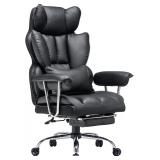 - COMFORTABLE OFFICE CHAIR — The ergonomic office chair equip a dual-layered sponge seat cushion. The big office chair backrest and independent lumbar support gently wrap around your body ,support your lower back, thoughtfully designed for the big and tall office chair to keep you comfortable during long hours of working, studying, or gaming. The leather office chair provides unparalleled comfort. Moreover, this executive chair with footrest can also be used as a cross-legged chair.