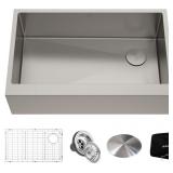 KRAUS Standart Pro 33-Inch Flat Apron Front Farmhouse 16-Gauge Single Bowl Stainless Steel Kitchen Sink, KHF410-33