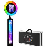 - 【Photo Booth RGB with Ring Light】This Portable Photo Booth is equipped with RGB ring light, 20+ color lighting modes, each lighting mode can choose 1%-100% brightness. you can adjust the color temperature (2700K-6500K) and brightness (0%-100%) by the remote control. And the angle of the ring light is flexible and adjustable.