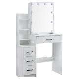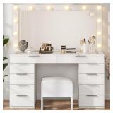 【HD Lighted Mirror & 3 Lighting Modes】The vanity table is equipped with a large high-definition mirror that reflects your appearance more clearly and realistically from all angles. 10 LED bulbs provide you with bright and soft light, and there are 3 light colors for you to choose from: cool white (for official or formal makeup), warm white (for skincare or regular makeup), and warm yellow (for dinner or party makeup), and the brightness of the light in each color can be adjusted.